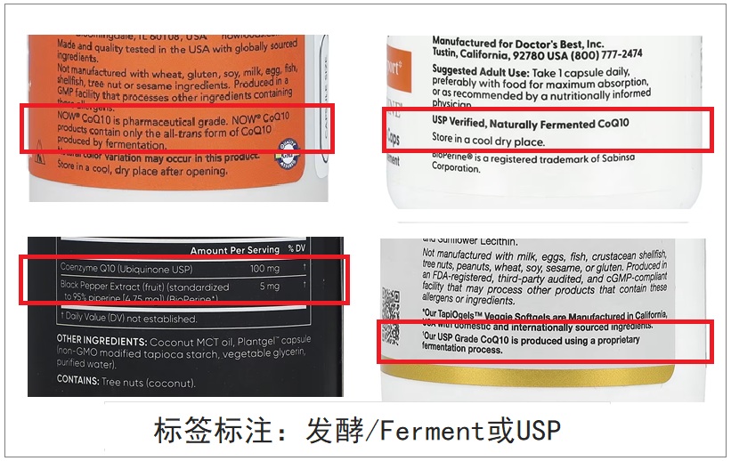 图5. 发酵和/或USP加注在泛醌(氧化型)产品标签上