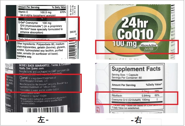 图6. 水溶性-环糊精(右)和聚山梨酯(左)泛醌(氧化型)产品标签示例